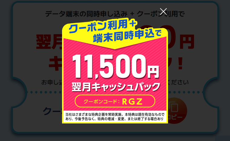 BIGLOBE WiMAXのクーポンとキャッシュバック