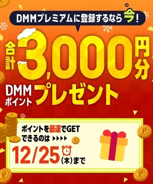 DMMプレミアム登録するなら今!DMMポイント3,000ptプレゼントキャンペーンの詳細
